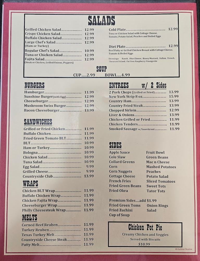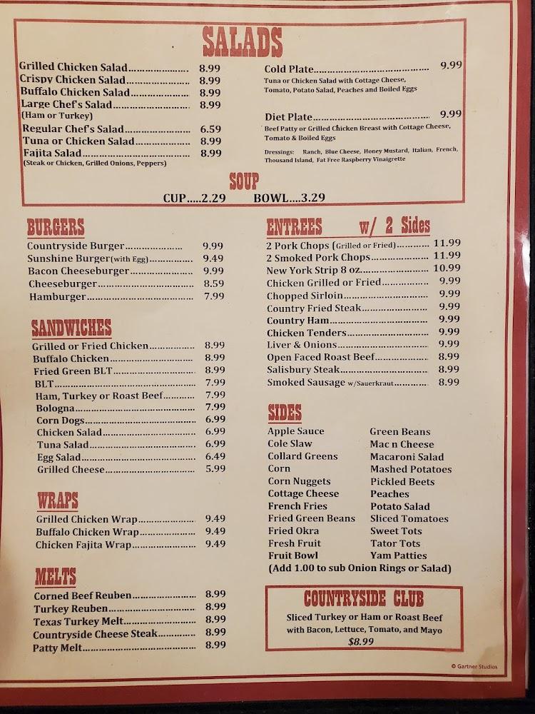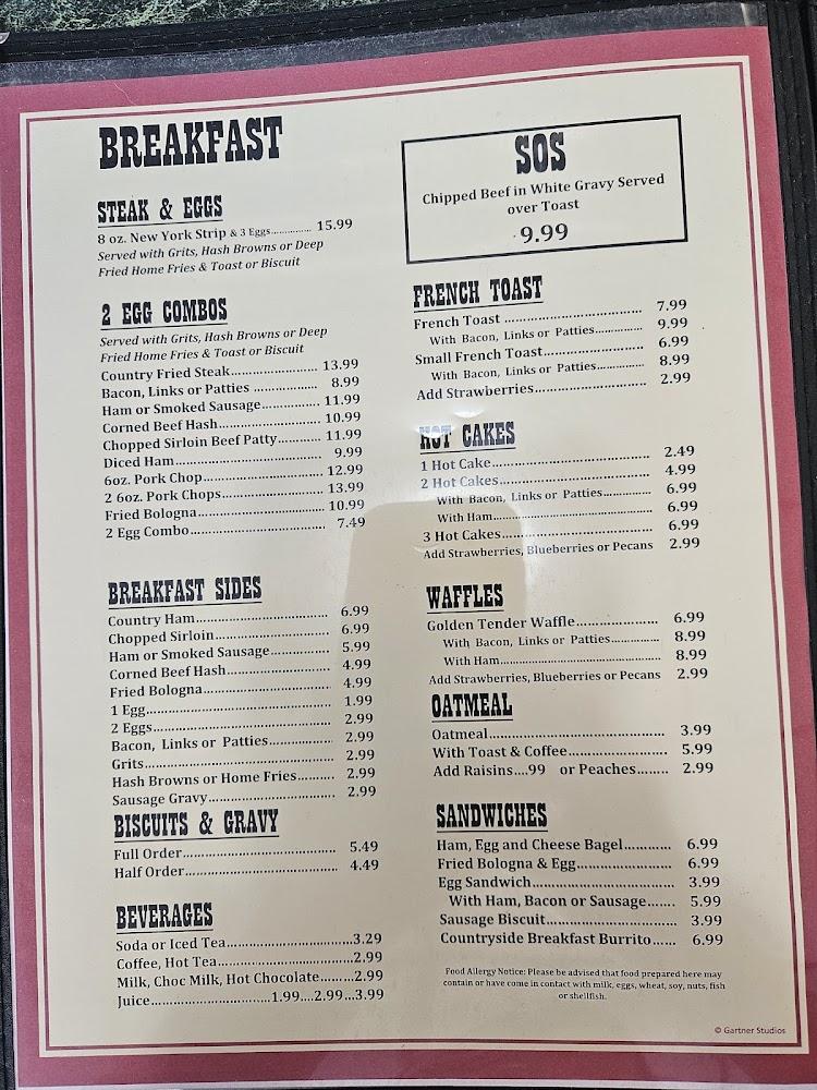 The menu at Countryside Diner reflects traditional American cuisine with a focus on breakfast items. Signature dishes include the all-meat omelet, flaky biscuits, and crispy hash browns; each carefully prepared to satisfy. Guests enjoy a variety of choices, from pancakes to breakfast burritos, making it easy to find a favorite.